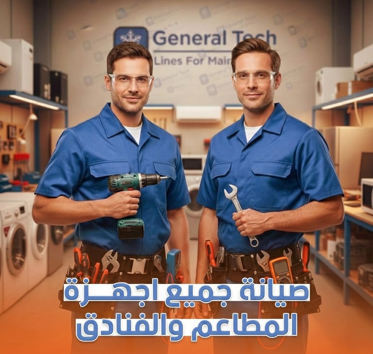 في جينيرال تك نوفّر خدمات صيانة وإصلاح شاملة لجميع أجهزة المطبخ الساخنة و الباردة المستخدمة في المطاعم، والفنادق، والمستشفيات.